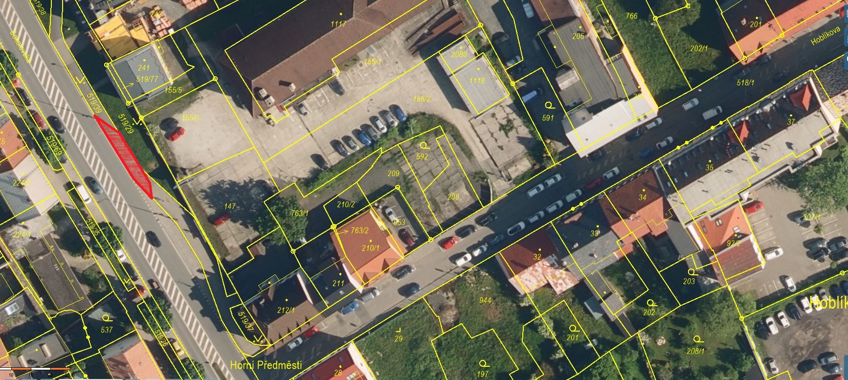 Město připravuje realizaci stavby „Parkoviště na ul. Hoblíkova v Novém Jičíně“. V rámci stavby dojde k dotčení části předmětného pozemku. Na této části pozemku bude realizována stavební úprava spočívající ve vybudování nového autobusového zálivu, který se stane součástí komunikace - silnice I. třídy č. 57 ve vlastnictví České republiky. V místě stávajícího autobusového zálivu bude vybudován vjezd a výjezd na nové parkoviště. V souvislosti s vyjádřením ke stavebnímu řízení předložilo Ředitelství silnic a dálnic s.p. (dále jen „ŘSD“), jako správce komunikace, návrh prohlášení stavebníka, jehož součástí jsou podmínky, za kterých bude vydán souhlas se stavebním záměrem (viz příloha č. 3 materiálu). Obsahem tohoto prohlášení je také závazek města převést po dokončení stavebních prací na základě darovací smlouvy nebo jiné obdobné smlouvy část pozemku pod zálivem do vlastnictví České republiky. Prohlášení stavebníka, jehož znění předložilo městu ŘSD je závazkem k uzavření darovací smlouvy. Po dokončení stavby bude na základě skutečného stavu vypracován geometrický plán za účelem oddělení části pozemku.